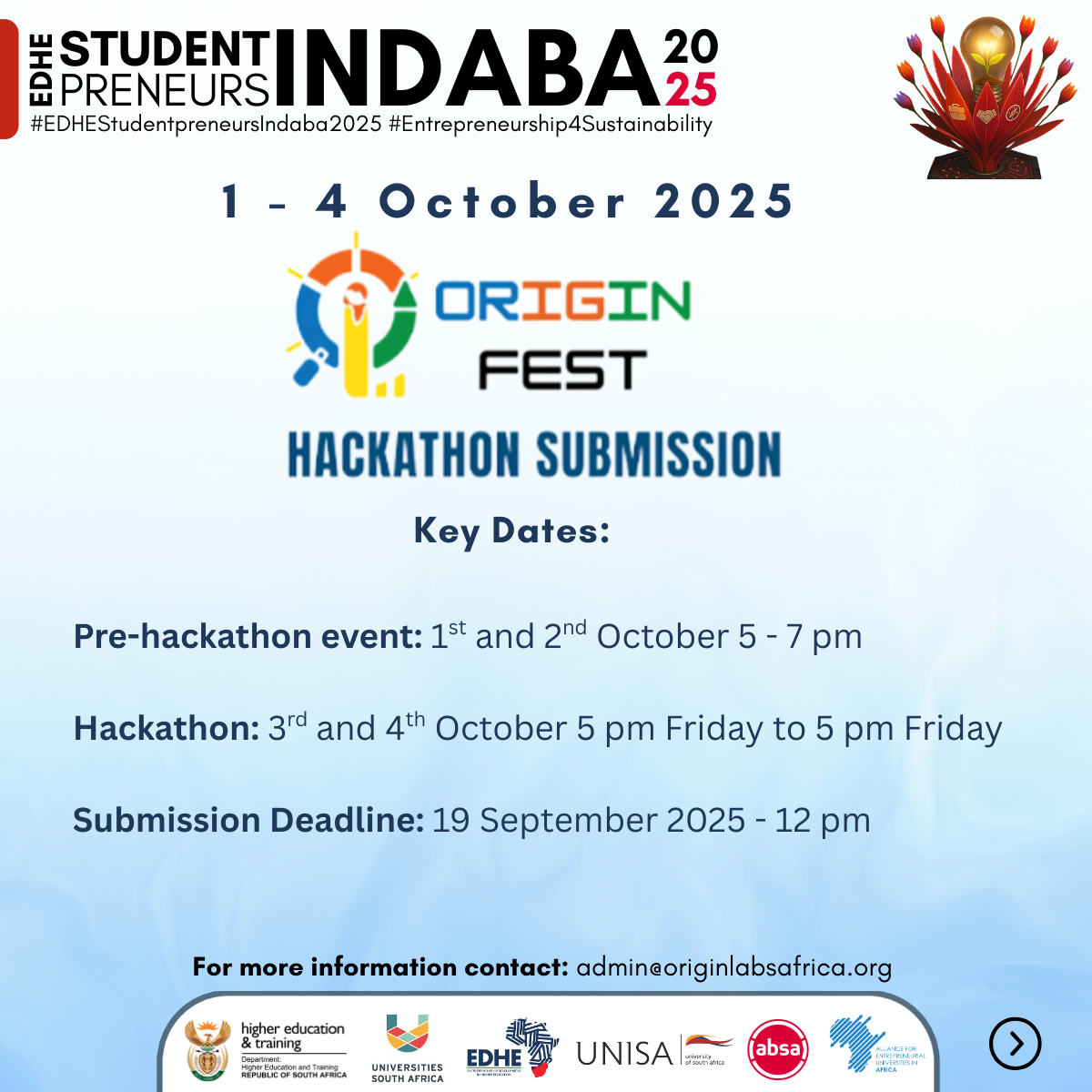 - Submission Deadline: Time: 05:00 pm (Pretoria time), Friday, 19th September 2025